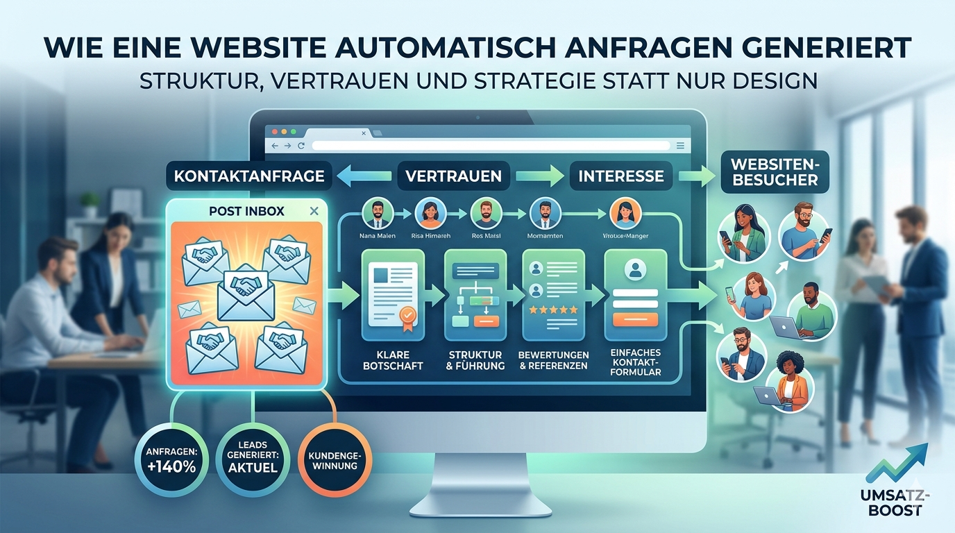 Struktur, Vertrauen und Strategie statt nur Design. Erfahren Sie, wie eine Website aufgebaut sein muss, um aktiv neue Kunden zu gewinnen.
